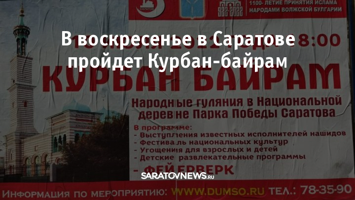 В воскресенье, 10 июля, в Парке Победы на Соколовой горе пройдет празднование «Курбан-байрам - 2022».