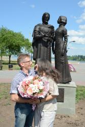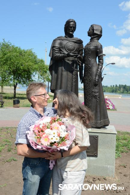 Сразу из загса «молодожены» отправились к памятнику Петру и Февронии Муромским. Фотография с ними символична не только потому, что в честь этих святых зародился День семьи, любви и верности – его в городе установило родное предприятие. Балаковская АЭС всячески поддерживает семьи своих сотрудников и вкладывает средства в развитие парков и скверов города, где собираться семьями – стало доброй традицией балаковцев.