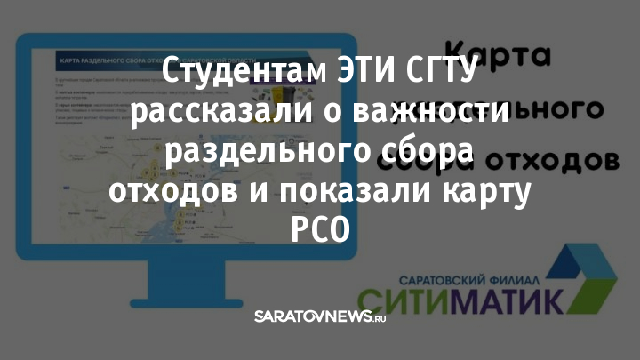 Отметим, что Саратовский филиал АО «Ситиматик» активно развивает направление просветительской деятельности. Большинство проектов в сфере экопросвещения было отмечено престижными всероссийскими и международными наградами. В рамках кампании по развитию раздельного сбора отходов на главной странице сайта компании 64.citymatic.ru появилась карта по РСО и памятка по типам складируемых отходов.