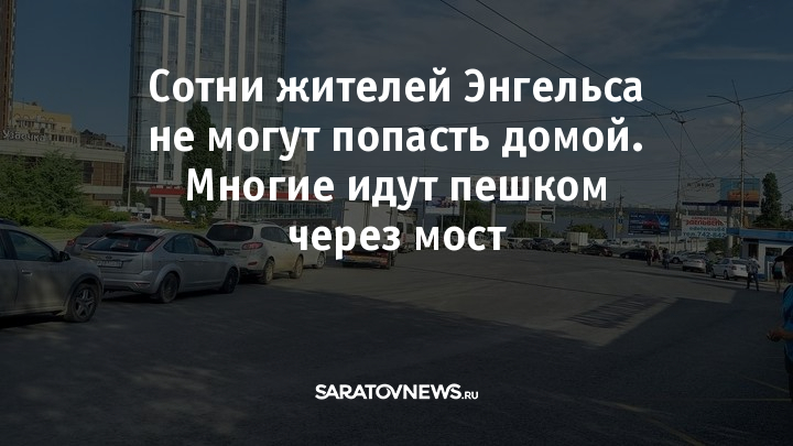 Многие отчаявшиеся стоять в душных автобусах граждане идут пешком в Энгельс по мосту.
