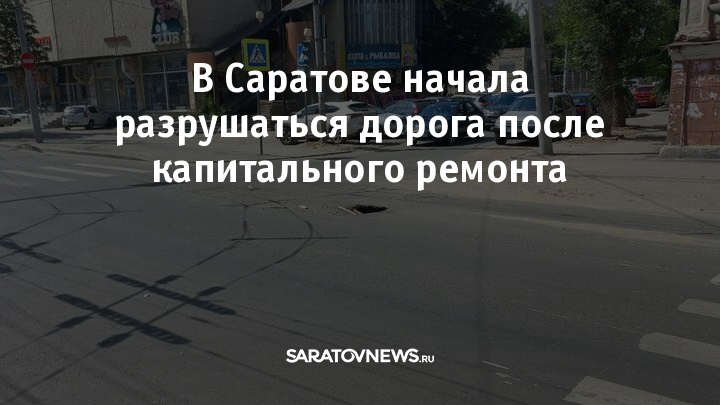 В Саратове началась разрушаться дорога после недавно проведенного капитального ремонта. Речь идет об участке на перекрестке улицы Чернышевского с Обуховским переулком. По словам очевидцев, в асфальте образовалась яма.