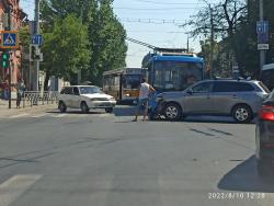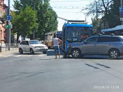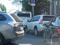 Таким образом, у Главпочтамта образовался транспортный коллапс. Троллейбусы и автобусы выезжают на встречку, чтобы объехать место происшествия.