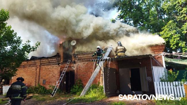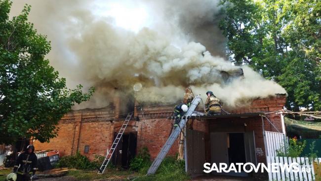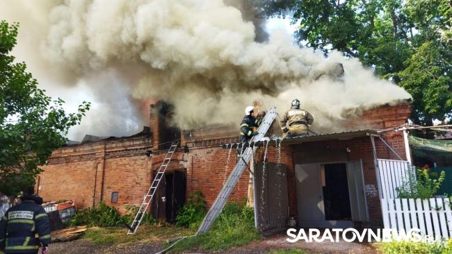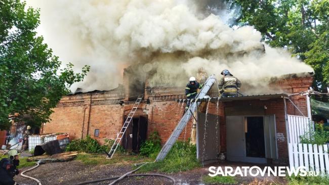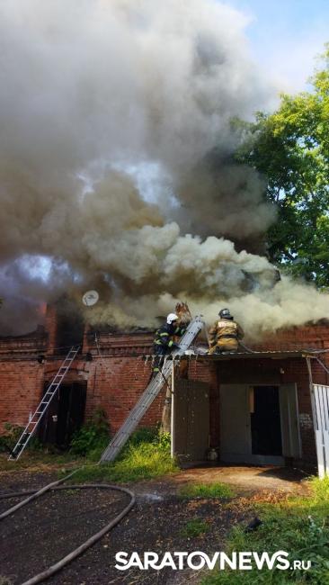 В Саратове на улице Вознесенской, 25 загорелись гаражи. Это бывший колокольный завод Медведева – объект культурного наследия регионального значения. На место происшествия прибыли семь машин: среди них три пожарных расчета, служба спасения и скорая помощь.
