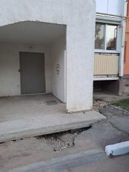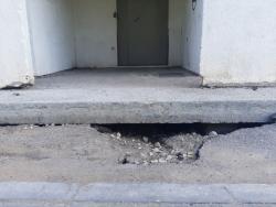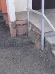 После поданного заявления были начаты работы по ремонту пандуса и крыльца, однако до логического конца работы не были доведены. В частности, коммунальщики «забыли» отремонтировать щели при входе в подъезд с обратной стороны дома. В дыру на асфальте во время осадков течет вода, потоки которой скапливаются в итоге в подвале многоэтажки. Все это постепенно разрушает фундамент.