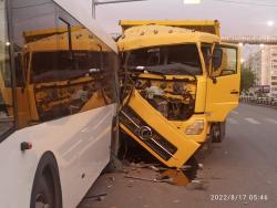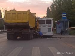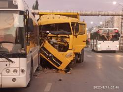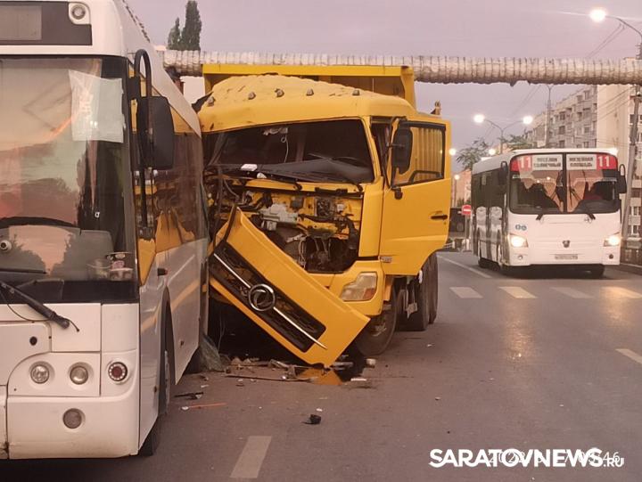 Ранним утром в Солнечном микрорайоне Саратова произошло серьезное ДТП. Примерно в 5.10 на улице Тархова китайский грузовик Dongfeng врезался в автобус, следовавший по маршруту № 53. Об этом сообщили саратовские водители.