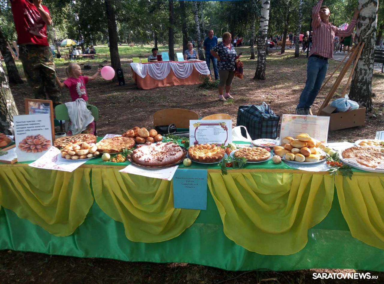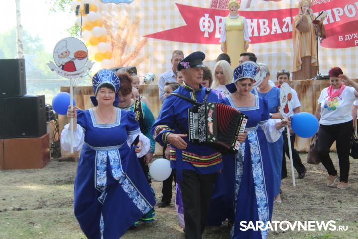 В районном центре Духовницкое прошел пятый фестиваль пирога. Главная сцена праздника расположилась в центре парка, который благоустроили по инициативе граждан в рамках региональной программы. Здесь же разместилась выставка пирогов, которыми славится духовницкая земля. Пироги были с мясом и грибами, капустой и картошкой, сладкие из местных ягод и фруктов, закрытые, украшенные косичками и открытые с взбитыми сливками, малиной и вишней – самый настоящий парад творчества здешних кондитеров и пекарей.