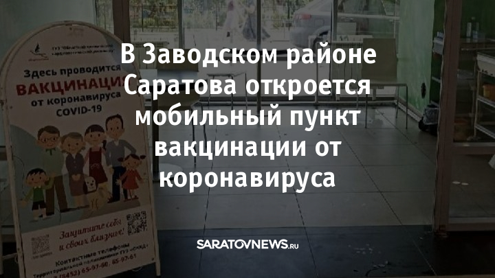 С 1 сентября в Заводском районе Саратова начнет работу мобильный пункт вакцинации от коронавируса. Граждан будут вакцинировать специалисты ГУЗ «Областной клинический кардиологический диспансер». Пункт расположится на 1 этаже ТРЦ «Сити Молл» (Ново-Астраханское шоссе, 80).