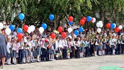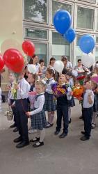 Традиционно линейки завершились первым звонком, и старшеклассники повели первоклашек на их первый урок.