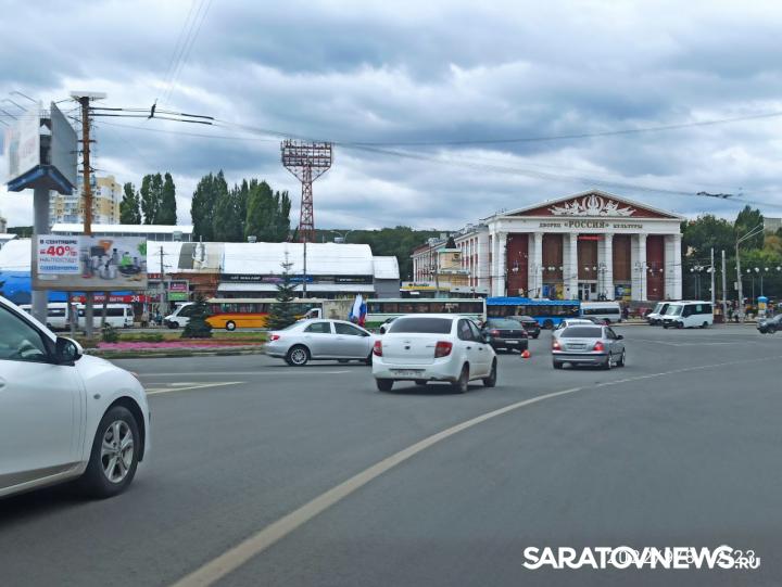 В Саратове на проспекте 50-лет Октября произошло ДТП. На кольце у 3-й Дачной не разъехались два автомобиля "Рено".