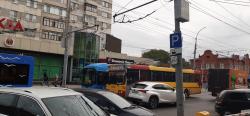 Троллейбусы по направлению к вокзалу остановились, а автобусы двигаются по встречной полосе. Пробка растянулась от вокзала до улицы Чапаева.