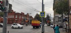 В эти минуты на перекрестке улиц Чапаева и Московской производится ремонт троллейбусной контактной сети. По словам очевидцев, из-за этого образовалась пробка.
