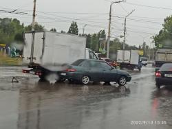 Дорожную ситуацию осложняет непрекращающийся дождь. По предварительным данным, пострадавших не наблюдается.