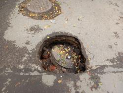 По словам граждан, крышка колодца провалилась в землю, образовав яму глубиной около полуметра.