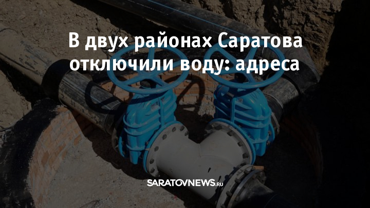 Сегодня, 26 сентября, в двух районах Саратова проходит отключение воды. Так, идет ремонт на водопроводе на пересечении ул. Чернышевского и Соборной. В связи с работами ограничено холодное водоснабжение жителям ул. Соборная (от Мичурина до Чернышевского и от Челюскинцев до Соборной площади), Мичурина (от Радищева до Б.Взвоза), Радищева (от Советской до Мичурина).