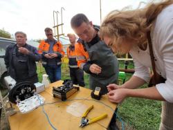 Знакомьтесь: Виктор Уваров - руководитель группы водолазов «Ростелекома», профессионал с 47-летним стажем. С удовольствием посвящал нас, журналистов, во все тонкости профессии. Алексей Жуков, подаривший любимой профессии 10 лет, умеющий задерживать дыхание на 5 минут и увлекающийся подводной охотой и дайвингом. Серьезный и ответственный Сергей Фокин (стаж 3 года), благодаря которому мы увидели работу водолазов. Александр Спиридонов (стаж 37 лет), помогавший коллеге надеть экипировку и выполнить погружение.