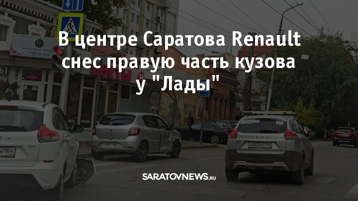 Сегодня, 30 сентября, в Октябрьском районе Саратова произошло ДТП. На пересечении улиц Мичурина и Чапаева столкнулись автомобили Lada ХRay и Renault. Отечественная машина снесла правую часть кузова иномарке. Об этом сообщили очевидцы.