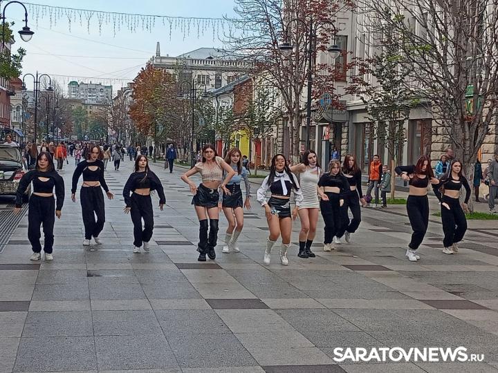 Сегодня, 2 октября, саратовцы могли наблюдать на проспекте Столыпина группу танцующих девчонок. Подростки танцевали на "Саратовском Арбате" прямо в разгар дождя. Красивые танцы привлекали немногочисленных прохожих и поднимали им настроение.