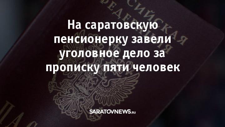 Жительница поселка Солнечный города Саратова стала фигуранткой уголовного дела. 60-летняя женщина прописала в своей квартире пять человек, которые там не проживали. В итоге на пенсионерку завели уголовное дело по статье «Фиктивная регистрация».
