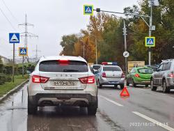 Столкновение случилось прямо на пешеходном переходе. Машины заняли правую полосу дороги. Движение транспорта на это участке затруднено. На месте происшествия работают сотрудники ГИБДД.