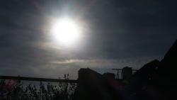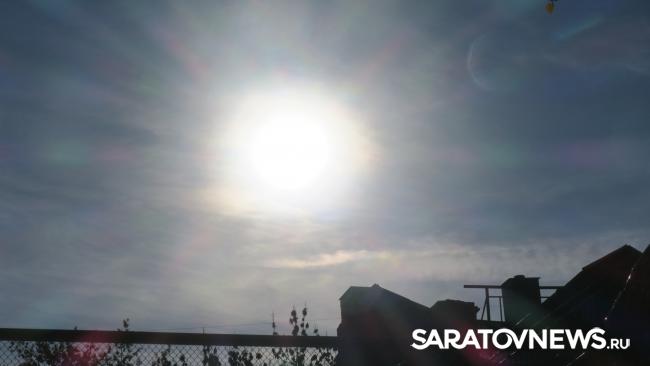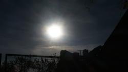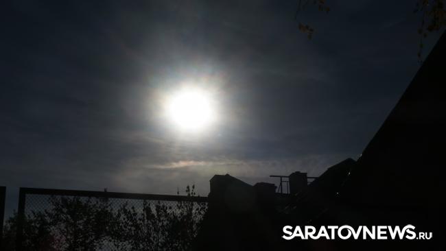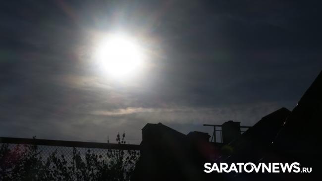 Сейчас в Саратове можно наблюдать уникальное астрономическое явление - частичное затмение солнца. Луна заслонила солнечный диск так, что солнце напоминает дольку мандарина.
