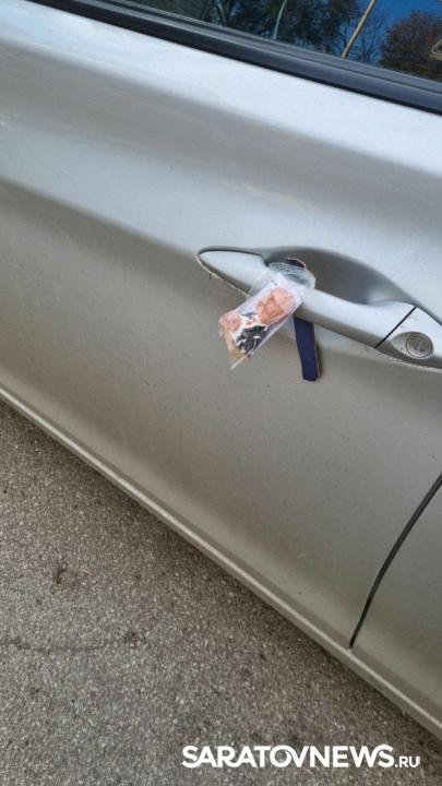 Жители Заводского района Саратова находят на дверных ручках припаркованных машин странные предметы. С виду они похожи на игрушку, внутри пакетика еще записка. Все находки обнаруживались во дворе дома на улице Барнаульской.