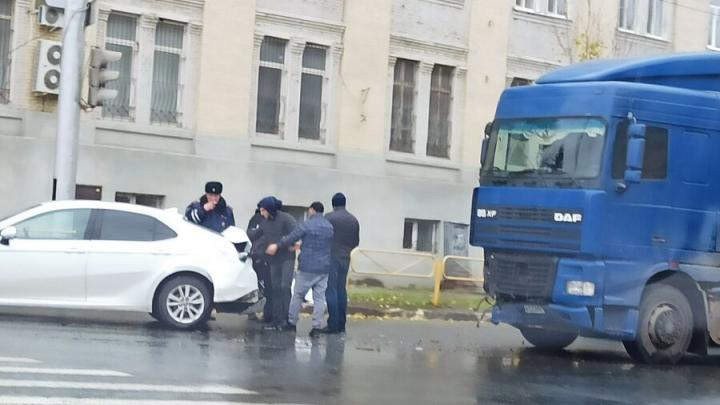 Сегодня, 30 октября, в Ленинском районе Саратова произошла дорожная авария. На дублёре проспекта Строителей грузовик DAF врезался в автомобиль Kia. Об этом сообщили саратовские водители.