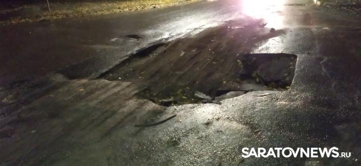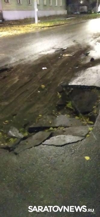 С одного края грунт в яме просел сантиметров на 30. В это место как раз и попадают колесами в основном легковушки, но был случай и с грузовиком. Саратовцы рассказывают минимум о трех случаях ДТП в злополучном месте и минимум о трех днях существования провала. После попадания в яму автомобили разбивают переднюю часть кузова.