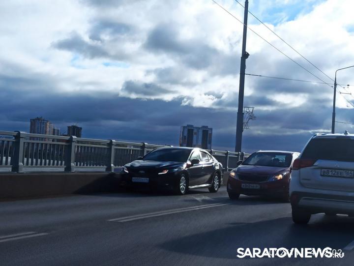В эти минуты на Саратовском мосту практически заблокировано движение транспорта. Ближе к Энгельсу столкнулись четыре автомобиля: Toyota, Chery, Skoda и "14-я". Машины заняли правую полосу дороги в сторону Саратова. Об этом сообщают водители, попавшие в пробку.
