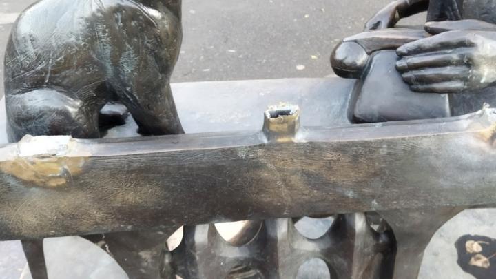 Об очередном акте вандализма сообщил пользователь сети "ВКонтакте" Роман Белоусов. Он рассказал, что сегодня снова обнаружил памятник без центральной детали.
