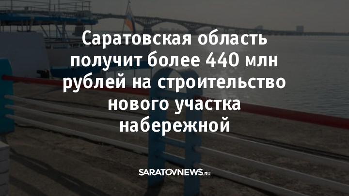 Саратовская область получит более 440 млн рублей на продолжение строительства нового участка набережной от улицы 2-й Садовой до Большой Садовой. Выделение средств из резервного фонда одобрено комиссией Федерального Собрания РФ. Всего область получит 440 млн 344 тысячи рублей. Деньги выделены при поддержке спикера Государственной Думы Вячеслава Володина.