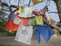 Белые львы с голубыми гривами при входе в храм, олени на крыше, золотые львы под золотым Буддой внутри – всё резко контрастировало с аскетичным Хошеутовским хурулом. В Цаган Амане как раз то буддийское изобилие – бумажных цветов, свечей, тканей, сидящих фигурок, которое ожидаешь увидеть, насмотревшись телевизионных картинок. Они встречаются там куда ни глянь – и все на контрастах, как в журналистских клише. Красно-золотые мандалы на потолке деревенского дома ламы почему-то гармонируют с обычной голландкой. Калмыцкий чай на молоке – вопреки устойчивым слухам, он не приторный и не соленый, мне дали две пиалы. Пышная клумба с гудящими пчелами в октябре – где в Поволжье такое возможно? Яркие, открытые работницы храма, рассказавшие, кто в их семьях православный, а кто – буддист, и если буддист, то почему справляет Пасху, – и сдержанный монах во главе хурула, пришедший в Тибет пешком из Китая.