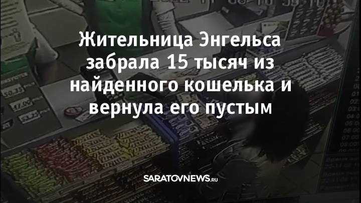 Выяснилось, что вечером 8 ноября дня 28-летний саратовец потерял на заправке в Дубках кошелек. О пропаже он заявил в полицию. Сотрудники уголовного розыска доставили в полицию подозреваемую – 47-летнюю жительницу Энгельса. Женщина рассказала, что нашла кошелек на асфальте у заправки. Забрала из него 15 тысяч рублей, кошелек отдала кассирам.
