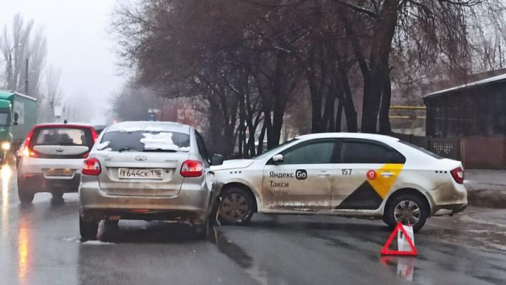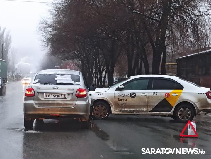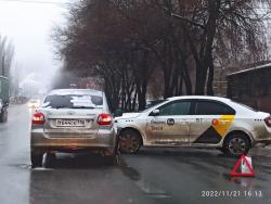 Сегодня, 21 ноября, в Ленинском районе Саратова произошло ДТП с участием такси. На Сокурском тракте перед переездом столкнулись автомобили "Лада Гранта" и Skoda, принадлежащая "Яндекс.Такси".