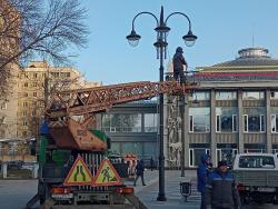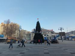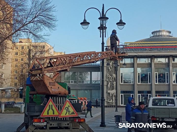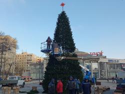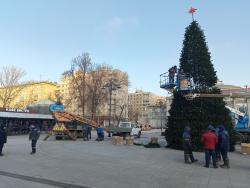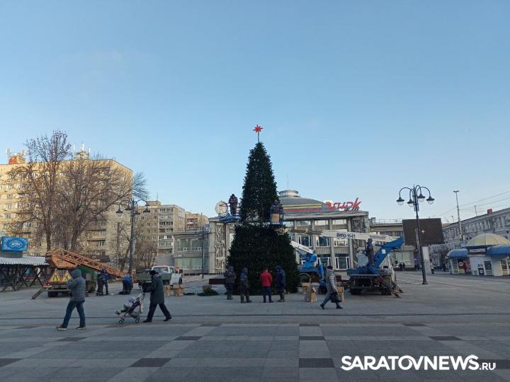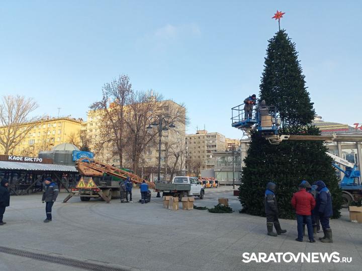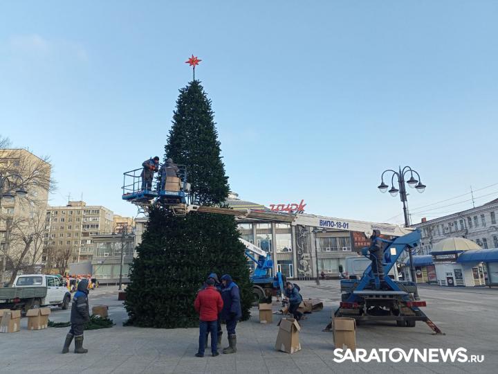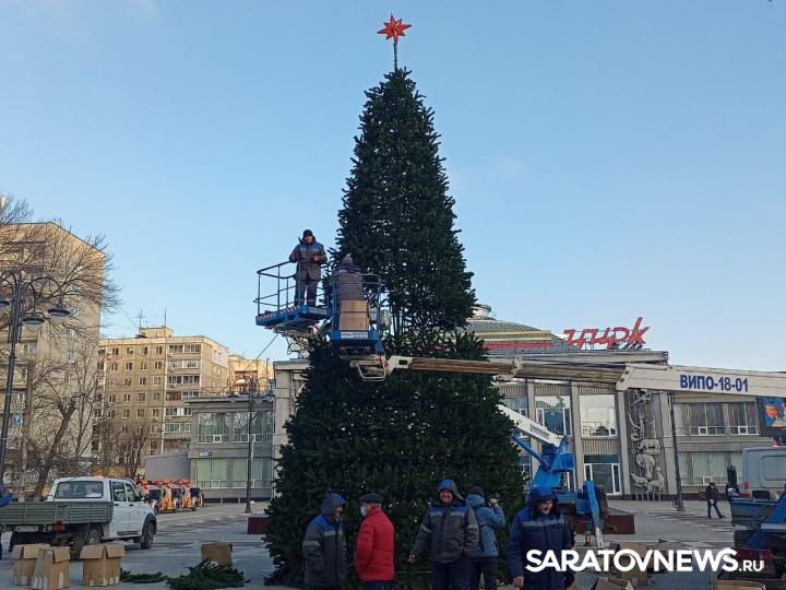 В эти минуты в Саратове идет установка новогодней елки у цирка. Праздничное дерево устанавливает МУП "Саргорсвет".