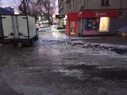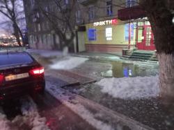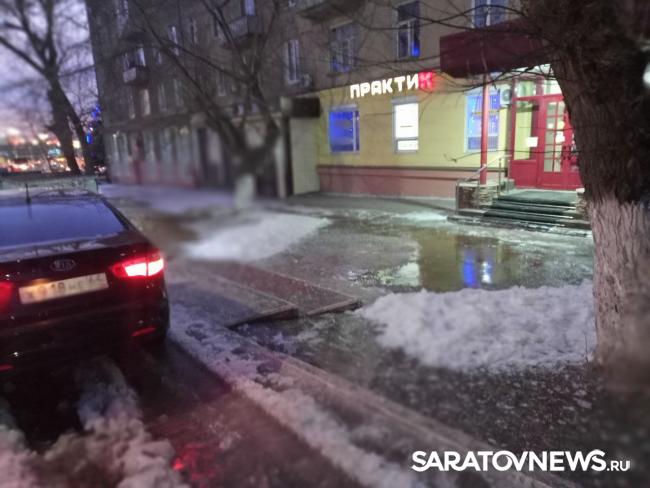 "Идет сильный поток воды. Администрацию района и ДК "Россия" практически смывает водой, ходить невозможно, люди идут по проезжей части, так как по тротуару идти невозможно. Месиво по колено. И оно быстро замерзает в каток. Полквартала от банка до администрации в воде, люди вынуждены идти по узкой дороге вместе с машинами", - возмущаются саратовцы.