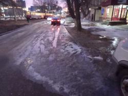Также жители сообщают, что из-за того, что темнеет рано, светает поздно, люди идут по катку в темноте. Саратовцы беспокоятся, что из-за потопа можно попасть либо под машину, либо под трамвай. К тому же нигде ничего не посыпано, обращают внимание горожане.