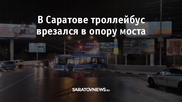 Сегодня утром, 18 декабря, на Славянской площади в Саратове произошло ДТП с общественным транспортом. Троллейбус наехал на опору моста. Электротранспортом управлял 52-летний водитель, сообщает ГИБДД Саратова.