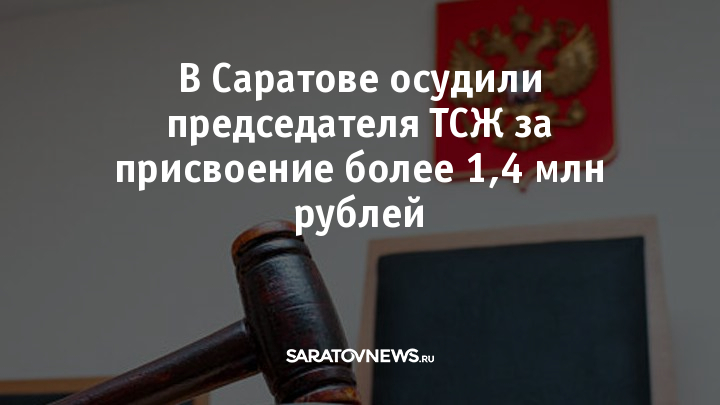 Ленинский районный суд Саратова признал 71-летнюю женщину виновной в присвоении и растрате. С марта 2018 по март 2021 годов гражданка занимала должность председателя ТСЖ. Как установило следствие, злоумышленница начисляла повышенную зарплату себе и двум сотрудникам, а также компенсацию за неотбытый ежегодный отпуск. В результате ТСЖ был причинен ущерб на сумму свыше 1,4 млн рублей.