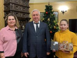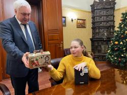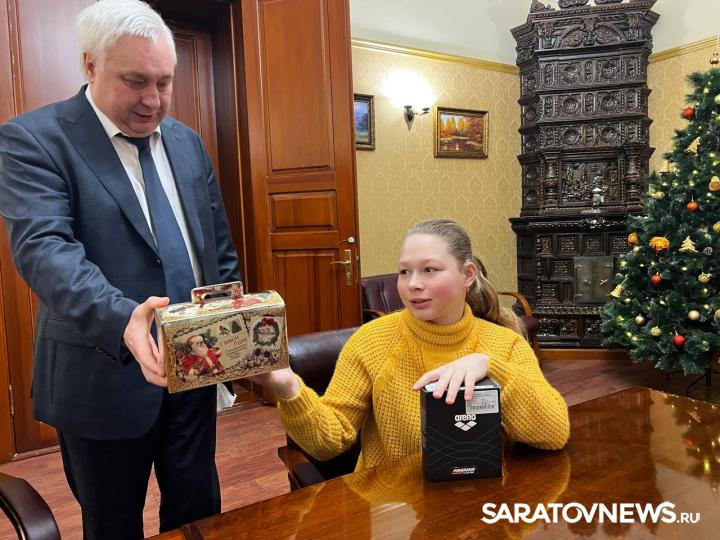 Глава района поздравил Элину с наступающим Новым годом, пожелал всегда верить в себя и добиваться новых спортивных успехов и подарил долгожданный подарок – профессиональный гидрокостюм.