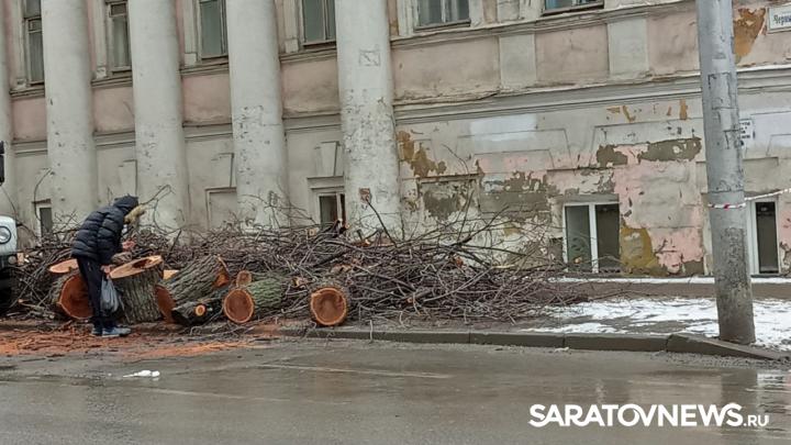 Прохожие подходят к крупным фрагментам деревьев, рассматривают их и интересуются, можно ли забрать.