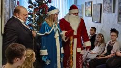 Дети по очереди выходили к елке, брали шарики-учреждения и встречались с волшебниками-главврачами, отдавали им конверты со своими желаниями. Главы медучреждений зачитывали мечты детей и обещали исполнить.