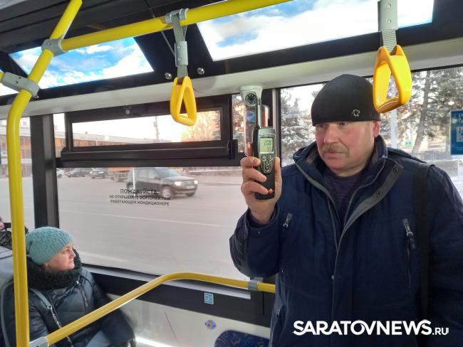 Сегодня была проверена температура в салонах четырех маршрутных такси, междугородном автобусе "Саратов-Энгельс" и в "новогоднем троллейбусе" 109-го маршрута. В автобусе 491-го маршрута температура также оказалась допустимой.