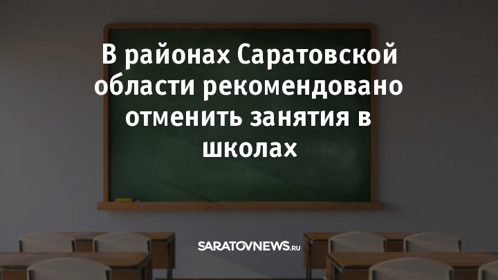 Министерство образования Саратовской области рекомендует органам местного самоуправления отменить занятия для школьников с 1 по 11 классы первой и второй смены.