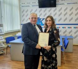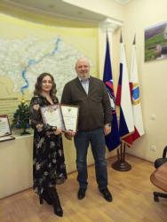 За цикл видеосюжетов по освещению реализации государственной политики в мелиоративном комплексе региона Елена Морозова получила Благодарственное письмо депутата Саратовской областной думы Дмитрия Полулях и Почетную грамоту ФГБУ «Управление «Саратовмелиоводхоз».