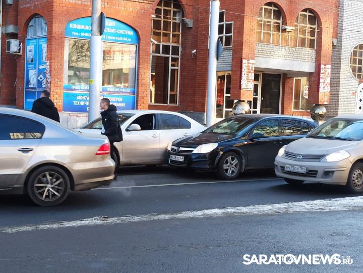 В эти минуты на улице Чернышевского в Волжском районе Саратова образовалась пробка. Транспорт встал на участке от Князевского Взвоза до улицы Челюскинцев. Причиной затора стало ДТП.