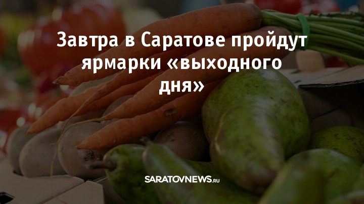 Также будет работать ярмарка в Заводском районе Саратова (на пересечении улиц Пензенской и Томской), в поселке Елшанка (Московская, 61) и сельскохозяйственный рынок в поселке Юбилейный (данный рынок работает все дни, кроме понедельника).