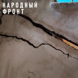 В соседнем подъезде аварийного дома из-за стройки отошла часть лестничного марша — с этой бедой, как и с затопленной канализацией, людям предстоит жить.