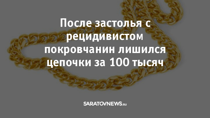 В полицию Энгельса обратился 37-летний местный житель, который стал жертвой кражи. Мужчина сообщил, что с 2 по 10 февраля выпивал в своей квартире с малознакомым мужчиной, представлявшимся Станиславом. После ухода гостя потерпевший обнаружил пропажу золотой цепочки стоимостью 100 тысяч рублей.