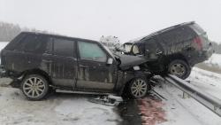 Примерно два часа назад в Красноармейском районе Саратовской области произошло смертельное ДТП. Около села Первомайское столкнулись автомобили Range Rover и Chevrolet Tahoe. Один из кроссоверов в результате удара выбросило за ограждение.