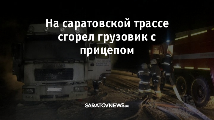 Вчера вечером, 15 февраля, в Красноармейском районе Саратовской области произошел пожар. У села Усть-Золиха на трассе горел грузовик MAN с прицепом. Выгорели кабина, моторный отсек, прицеп.